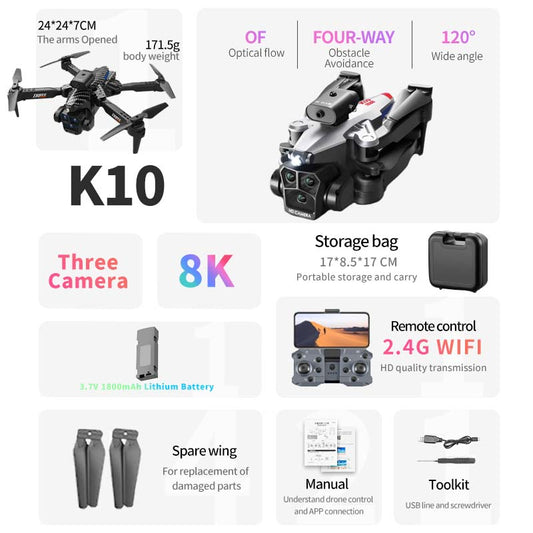 KBDFA K10 Max Drone Professional Aerial Photography Aircraft 8K Three-Camera HD One-Key Return Obstacle Avoidance GPS Drone