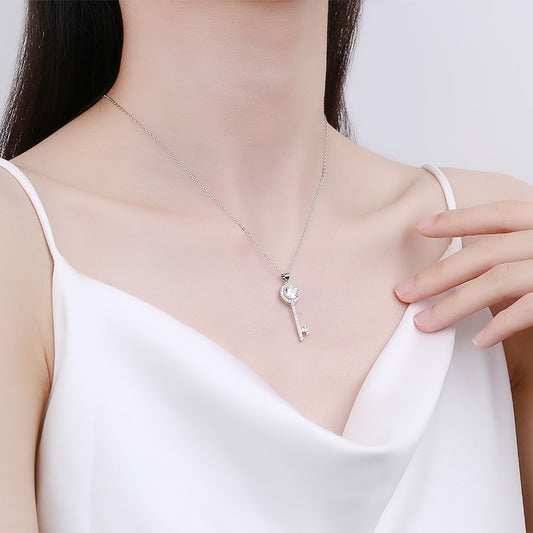1 Carat Key Moissanite Zircon 925 Sterling Silver Necklace Pendant, New For Women Luxury Jewelry Gift
